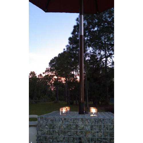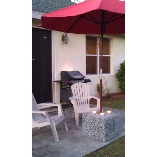 Gabion Basket casing to go around most patio umbrella stands on the market. Galvanized 1.5"x1.5" 12.5 guage steel mesh, 24"long x 24" wide x 20" tall. Gabion Basket comes with 4 sides, 1 bottom, and 1 top with cut out for umbrella p... Learn More »